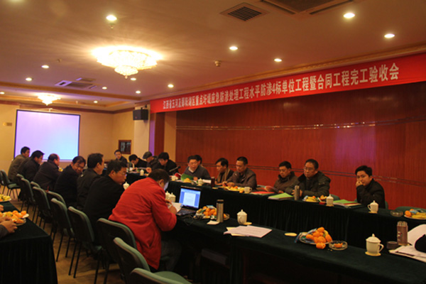 2012年1月11日,江西省五河及鄱陽湖區重點圩堤應急防滲工程建設項目部在南昌市主持召開了水平防滲4標單位工程暨合同工程完工驗收會,并順利通過了單位工程暨合同工程完工驗收。驗收會由省河湖局許盛豐處長主持,各參建單位代表到會并作了匯報,公司吳鐵凡總工程師、工程部郭洪有經理等參加了驗收會。