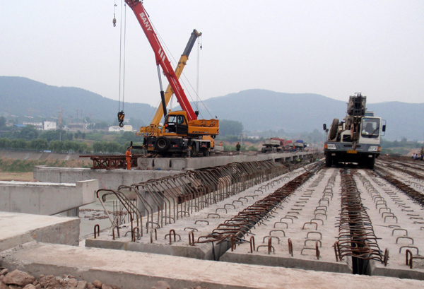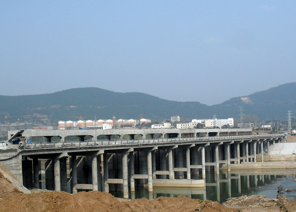 我公司2010年承建的大型市政災后重建工程——四川省鹽亭縣梓江河橋閘工程,由兩座長270M,寬11.5M的橋梁夾一座大型水閘構成。水閘全長202M,13孔×12M寬,采用6M×12M大型平板閘門,水閘50年一遇洪水下泄流量為7260M3/S,屬于大(I)型水閘項目工程。鹽亭縣梓江河橋閘工程現已按合同工期完工,正待驗收,它的建成將極大地提升鹽亭縣新城區(qū)“城在水中,水邊有城” 的新景象,成為鹽亭縣城市建設一道靚麗的風景線。