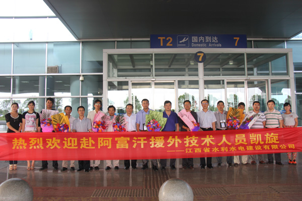 6月1日下午4時,公司首批援建阿富汗帕爾旺水利項目增項工程技術人員由阿富汗轉機烏魯木齊后,飛抵南昌昌北機場。董事長、總經理王元旦、黨委副書記王延軍、副總經理黃鄭民及部分職能部門員工前往機場迎接。