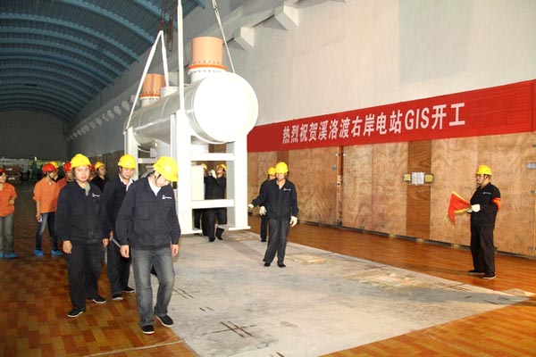 2012年7月,溪洛渡右岸電站500千伏GIS室第一臺(tái)斷路器吊裝就位,拉開(kāi)了我公司在右岸電站開(kāi)關(guān)站安裝的序幕。