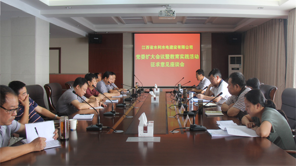 8月28日,江西省水利水電建設有限公司召開公司黨委擴大會議暨教育實踐活動征求意見座談會。省水利廳副巡視員、廳教育實踐活動第一督導組組長周江紅、副組長郭明等領導到會指導。公司黨委書記、董事長兼總經理王元旦主持大會,黨委副書記王延軍傳達省委書記強衛同志在全省第一批黨的群眾路線教育實踐活動工作會議的講話。公司黨委委員、各黨支部書記、中層以上管理人員和群眾代表等30余人參加了會議。