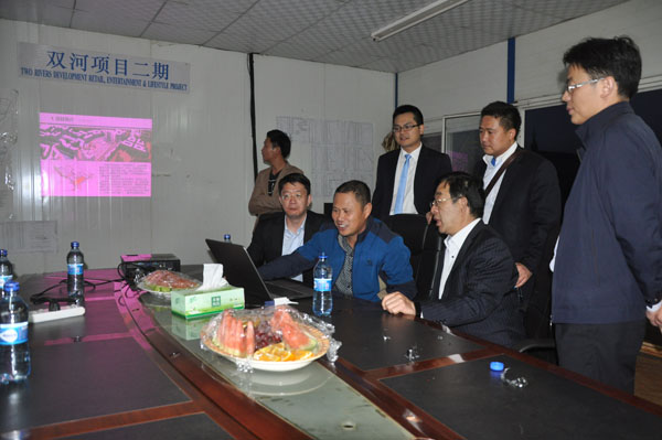 2016年7月22日,中非基金董事長遲建新一行,考察我司投資并參建的雙河項(xiàng)目。遲董事長對雙河項(xiàng)目表現(xiàn)出極大的興趣,不僅實(shí)地察看了雙河購物中心,還親臨項(xiàng)目部營地,聽取有關(guān)雙河項(xiàng)目建設(shè)及招商情況匯報,并就雙河項(xiàng)目投資收益及后續(xù)開發(fā)事宜與我司人員進(jìn)行了交流。