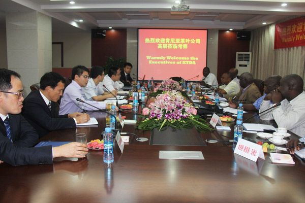集團(tuán)資訊2014年9月上旬,肯尼亞茶葉發(fā)展有限公司董事Philip Kibirech NG’Etich先生一行七人應(yīng)邀來我公司參觀考察,旨在加深雙方了解和建立互惠共贏的合作。總經(jīng)理徐洪良代表公司對(duì)他們的到來表示熱烈歡迎,總會(huì)計(jì)師王義生、總工程師胡鴻煌及海外公司相關(guān)負(fù)責(zé)人參加了會(huì)見并陪同肯尼亞客人參觀了公司總部各部門。