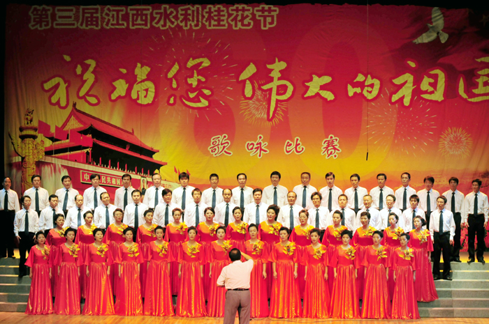 2009年9月25日,第三屆江西水利桂花節(jié)“祝福您,偉大的祖國”歌詠比賽在省話劇團(tuán)藝術(shù)大廳隆重舉行,江西省水利廳以及廳直屬單位共10個代表隊(duì)參加了比賽。