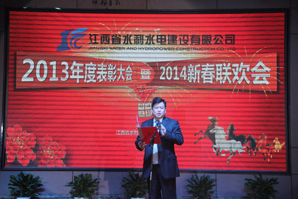 在隨后的新春聯(lián)歡會上,王總發(fā)表了熱情洋溢的新年賀詞,并代表公司董事會和領導班子,向全體員工、支持公司改革發(fā)展的離退休老同志和員工家屬,以及仍堅守在工作崗位的海內外一線員工致以節(jié)日的祝福和誠摯的問候。王總在致詞中說,2013年是公司發(fā)展史上不平凡的一年,在公司董事會的正確領導下,全體員工以企業(yè)為家,團結一心、不畏艱難,腳踏實地、開拓創(chuàng)新,沿著年初制定的各項工作目標努力奮進。公司各項事業(yè)繼續(xù)保持蓬勃發(fā)展的良好形勢,朝著質量好、品牌優(yōu)、市場廣的集團型企業(yè)方向邁進。2013年,公司開拓進取、勇于突破,準確定位、大膽決策,利用資本運作境內外項目,以投融資帶動市場,在國內嘗試承接BT項目,國外則跨行業(yè)進入投資領域,利用投資經營提升企業(yè)競爭力。王總指出,公司在2013年取得了一系列優(yōu)秀的成績,兩項省級工法和兩項部級工法通過評審,內部管理制度日益健全,爆破資質、城市園林綠化資質通過審核,在國際工程建設領域發(fā)展迅速,被譽為江西水利行業(yè)走向世界、開拓國際市場的排頭兵。