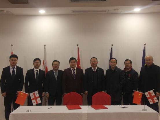 12月15日,公司董事長王元旦、海外公司總經理黃鄭民一行與格魯吉亞絲綢之路合作有限公司董事長劉濟民在江西中格文化交流中心舉行格魯吉亞市場全面合作協議簽約儀式。