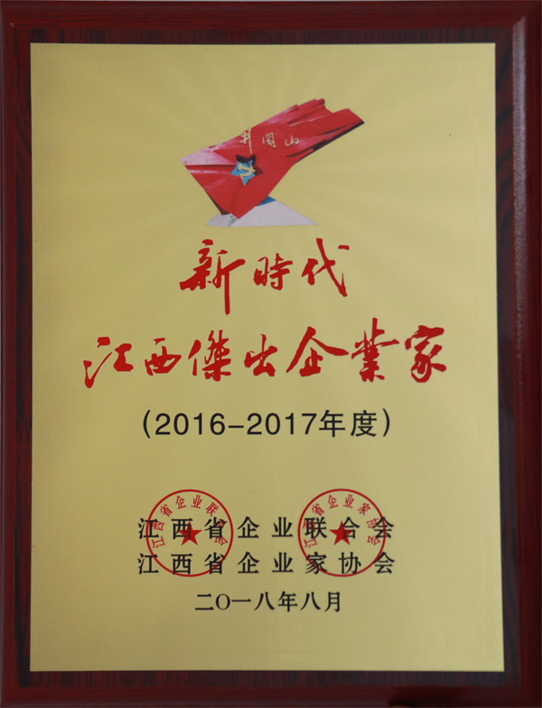 8月17日上午,在江西省企業聯合會、江西省企業家協會2018年度表彰大會上,經過推薦和評選,董事長王元旦獲評2016—2017年度新時代江西杰出企業家榮譽稱號。