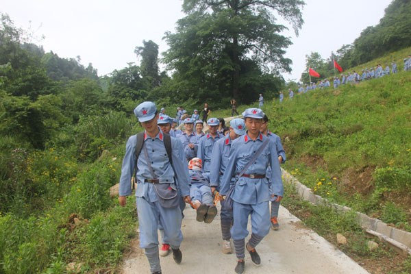 抵達井岡山后,全體人員立刻進入三灣隊伍整編環節,推薦隊長、政委和旗手,設計隊名、口號和LOGO。很快“飛龍隊”、“戰鷹隊” 等名字紛紛閃亮登場。“龍征萬里,所向披靡”、“ 群狼行千里,星火可燎原”等口號一次又一次迎來全場的陣陣歡呼。隨后進行了“穿越叢林、突破封鎖線、匍匐前進、火線救援”4個比賽項目,這些比賽項目,增強了大家的團隊意識,每名成員充分認識到了團結協作、友愛互助的重要性,使大家在比賽中受到啟發、受到鼓舞、更使大家得到了鍛煉,經受了考驗。